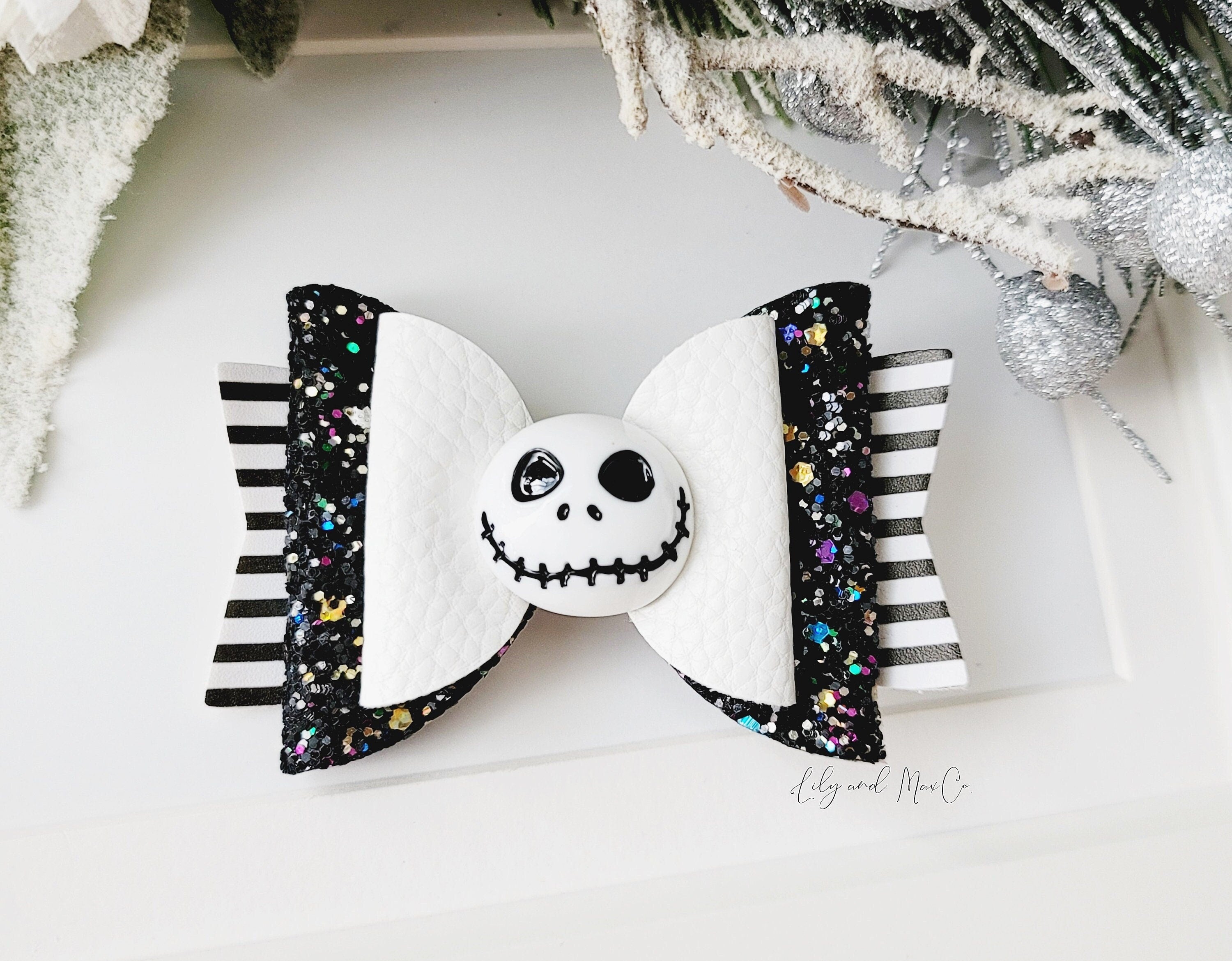Sparkly skeleton vibes just got cuter! This glittery bow clip brings Halloween magic to everyday style. Sized perfectly at 3.5-4 inches and secured with a sturdy alligator clip, it's ideal for birthday celebrations, casual hangouts, special events, photo shoots, and holiday fun.