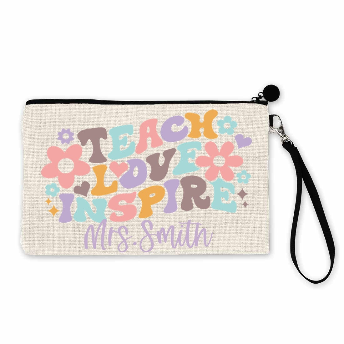 Personalized Retro vibes pencil pouch, teacher pencil bag, available on shirt