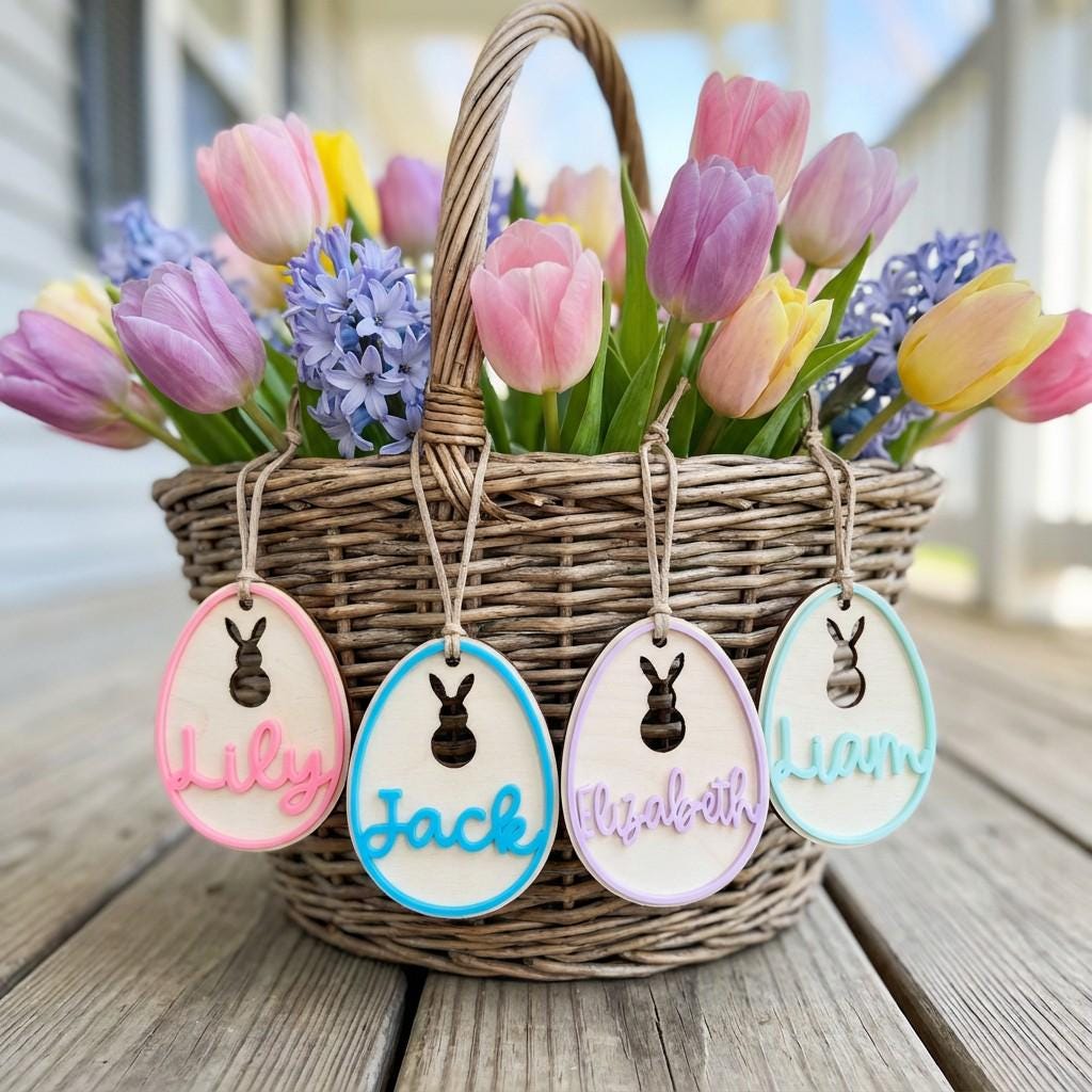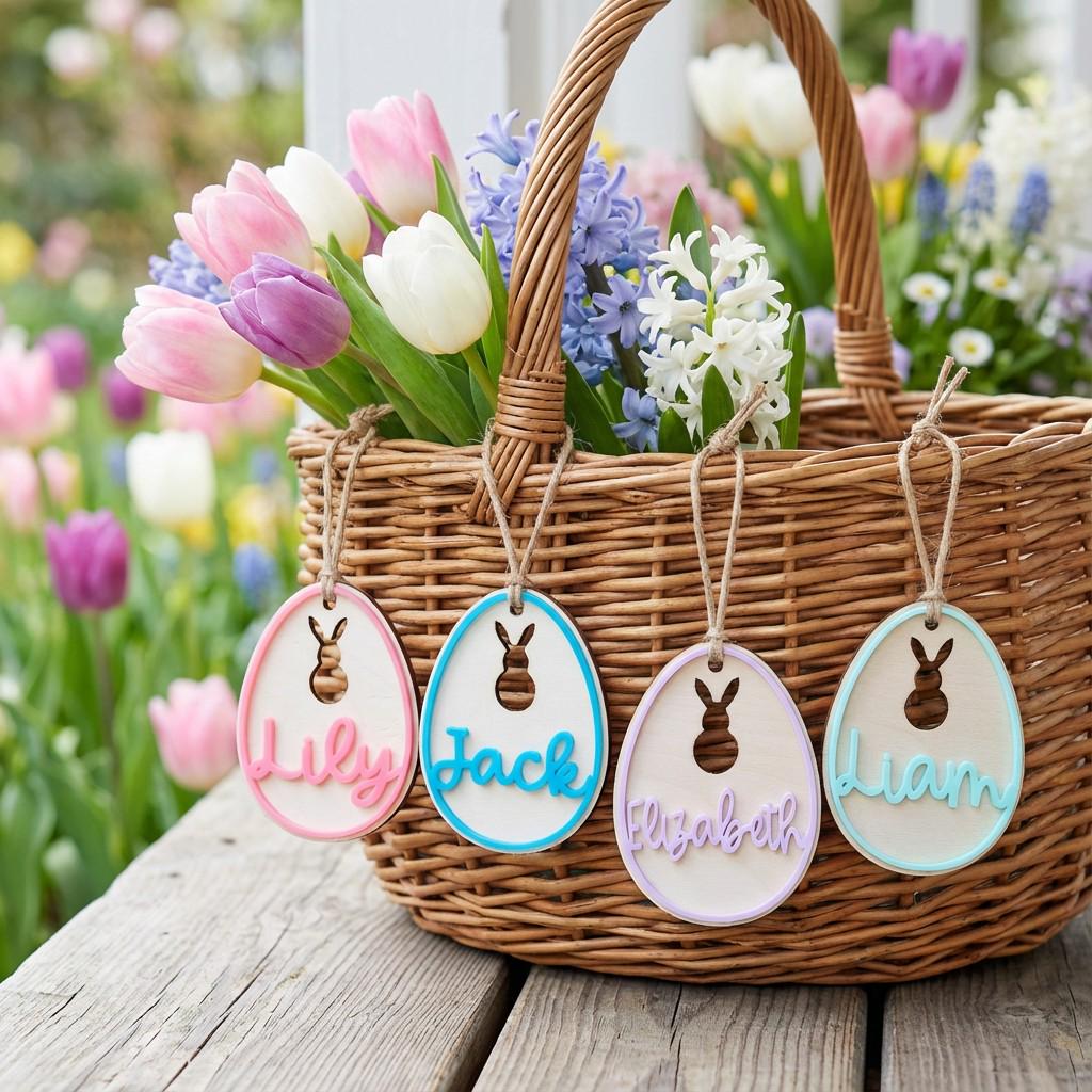 Personalized Easter Basket Tag: Wooden Bunny Egg Name Tag