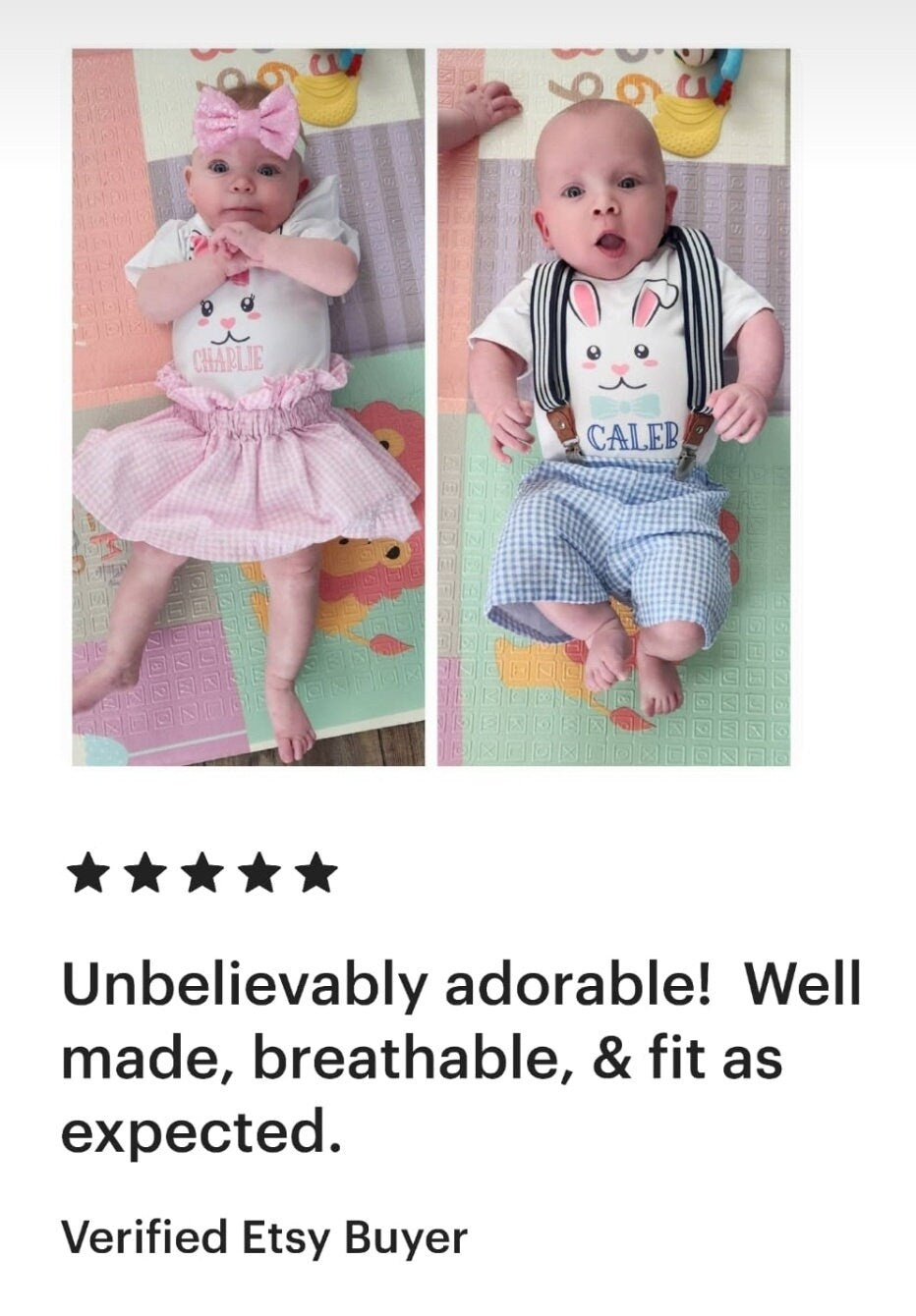 These shorts great for boys also suitable for girls if you need matching bottoms let us know! We can swap the skirt to these comfy shorts! We send shorts according to your top sizes unless you prefer specific size! Premium quality lined seersucker shorts designed by LilyandMax ( all sizing, materials and details) and finished with our sewing manufacturer with hand picked quality materials. You will love this seersucker fabric! These shorts are perfect for spring,summer, Easter, birthdays, everyday wear and even fancy enough for special occasions to complete your little one's outfit! They are new to our stores but already one of the everyday- bestseller item in our retail stores as well and our customers love them! Super stretchy elastic waist gives lots of comfort and room to grow!
