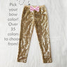 PANTS: Designed by us with specific length and used premium soft fabric ( %95 cotton %5 spandex) back and behind the sequin fabric to eliminate itchiness~ ONLY front has sequin, back of pants are made with matching soft cotton.