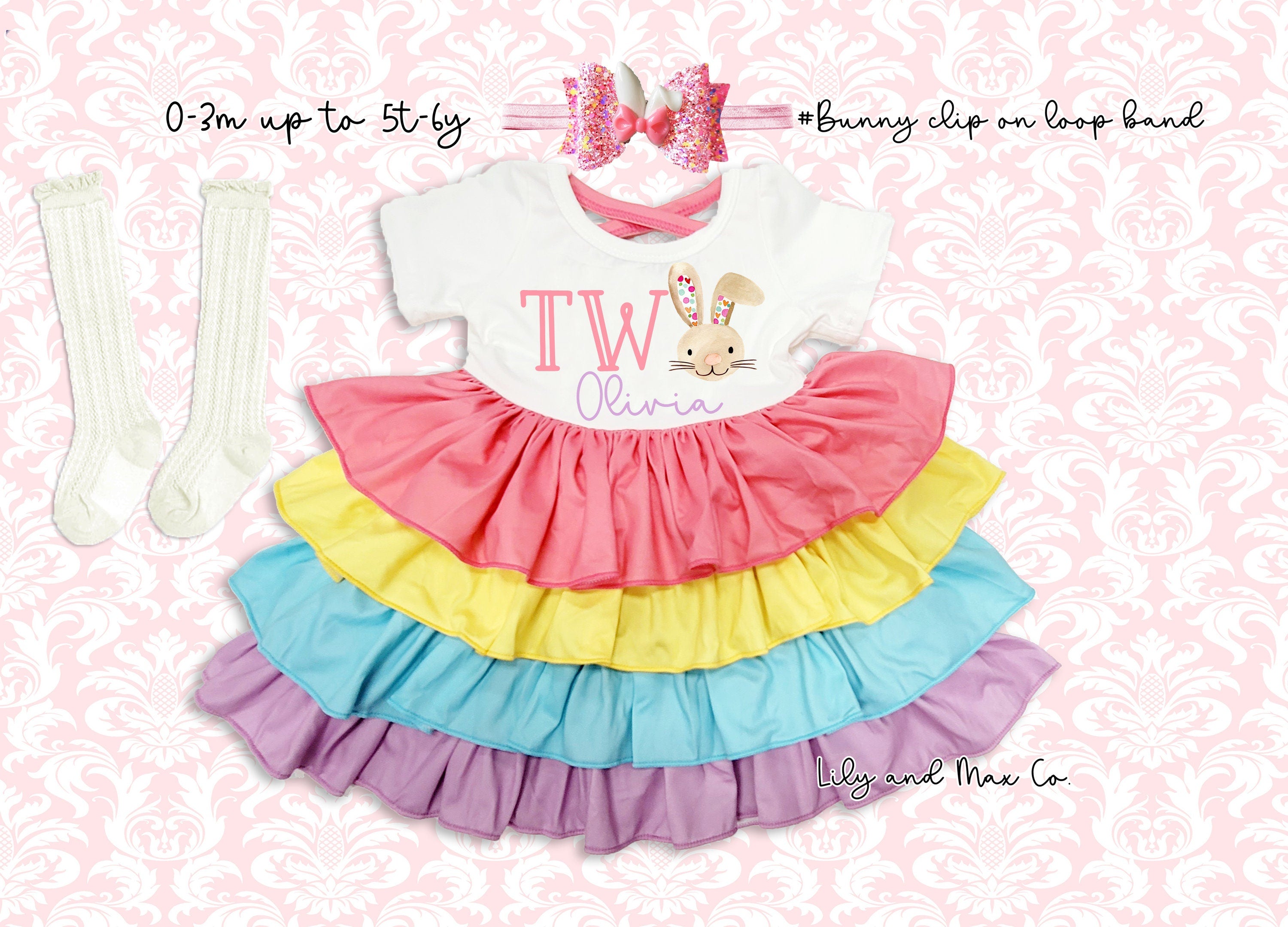 Easter 2nd birthday girl Dress, Rainbow, Bunny, Easter outfit dress