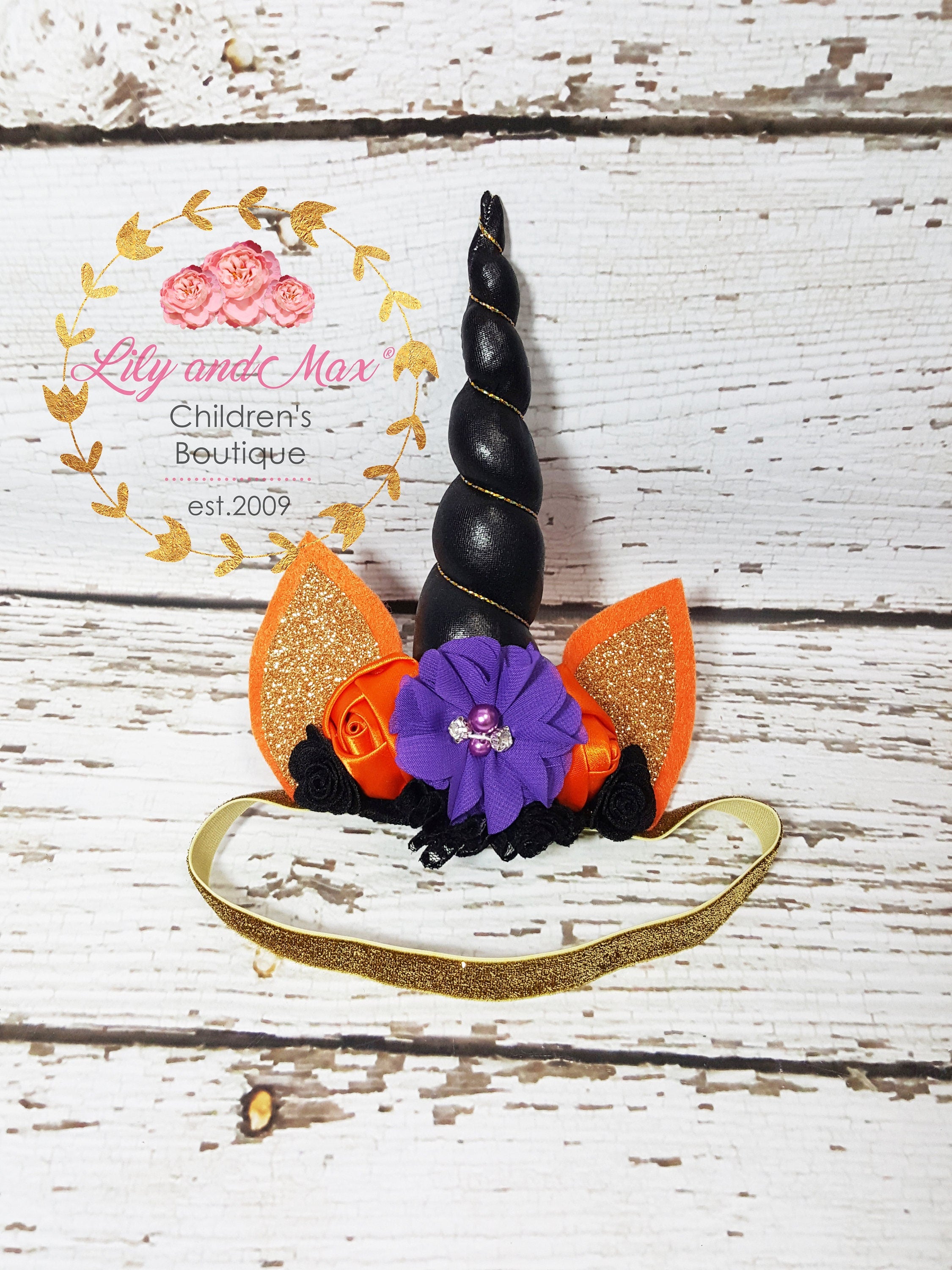 Halloween Unicorn Headband: Glitter Elastic, Jeweled Flowers