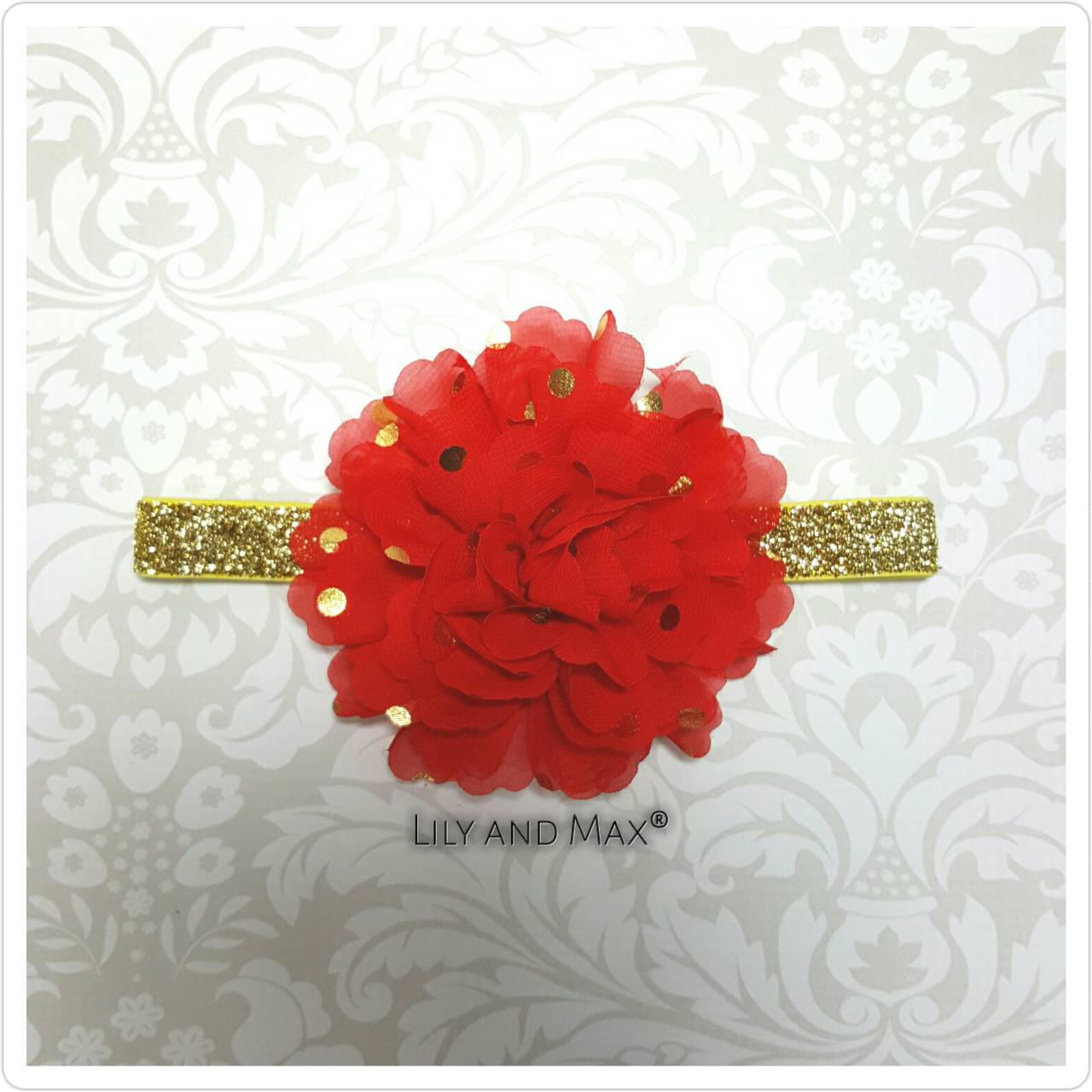 Christmas Headband: Red Gold Polka Dot Flower, Baby Toddler Headband