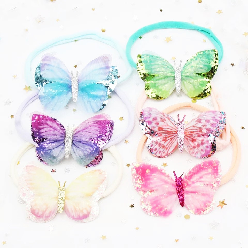 Glitter Butterfly Headbands: Realistic Baby Headband Set - 6-Pack