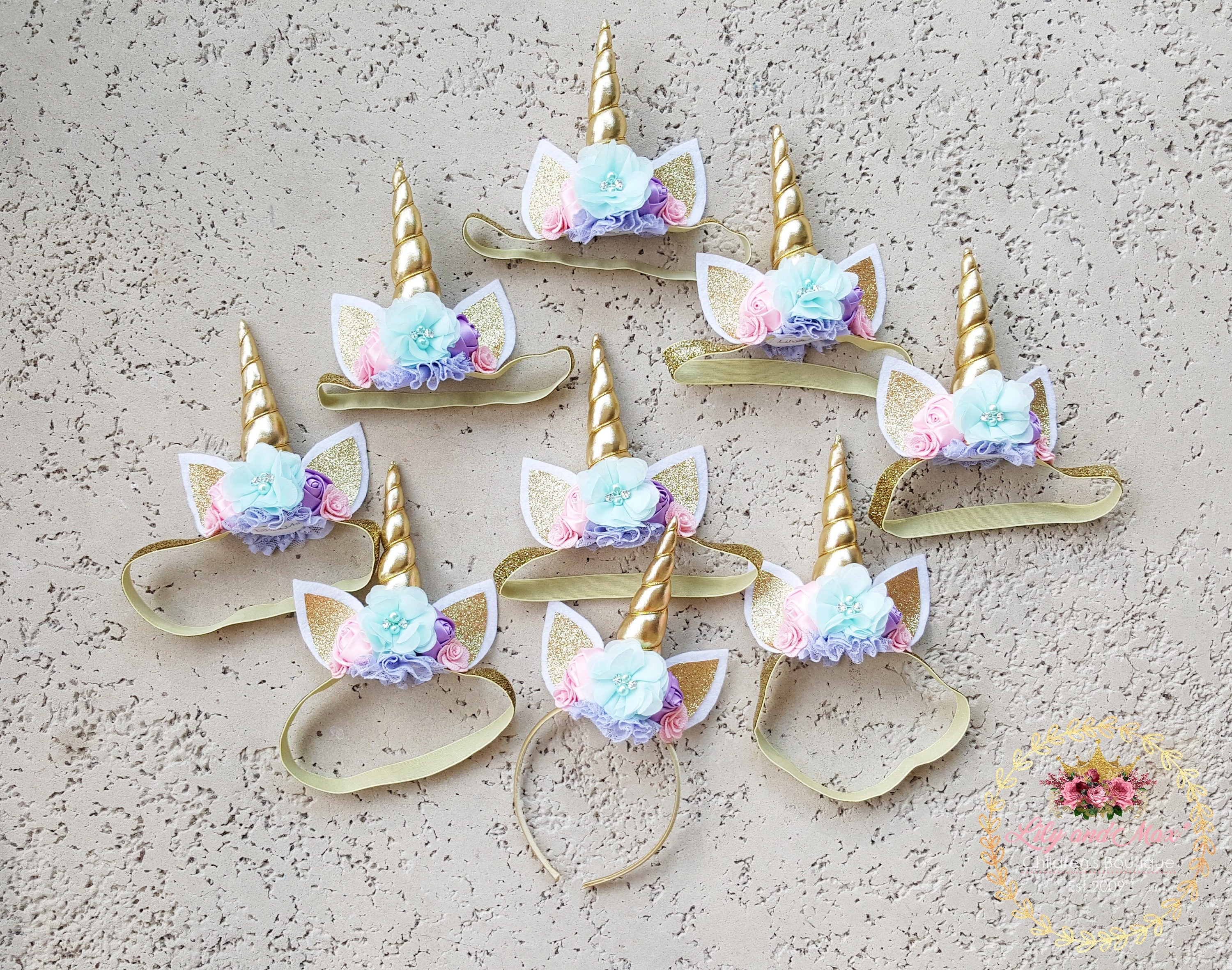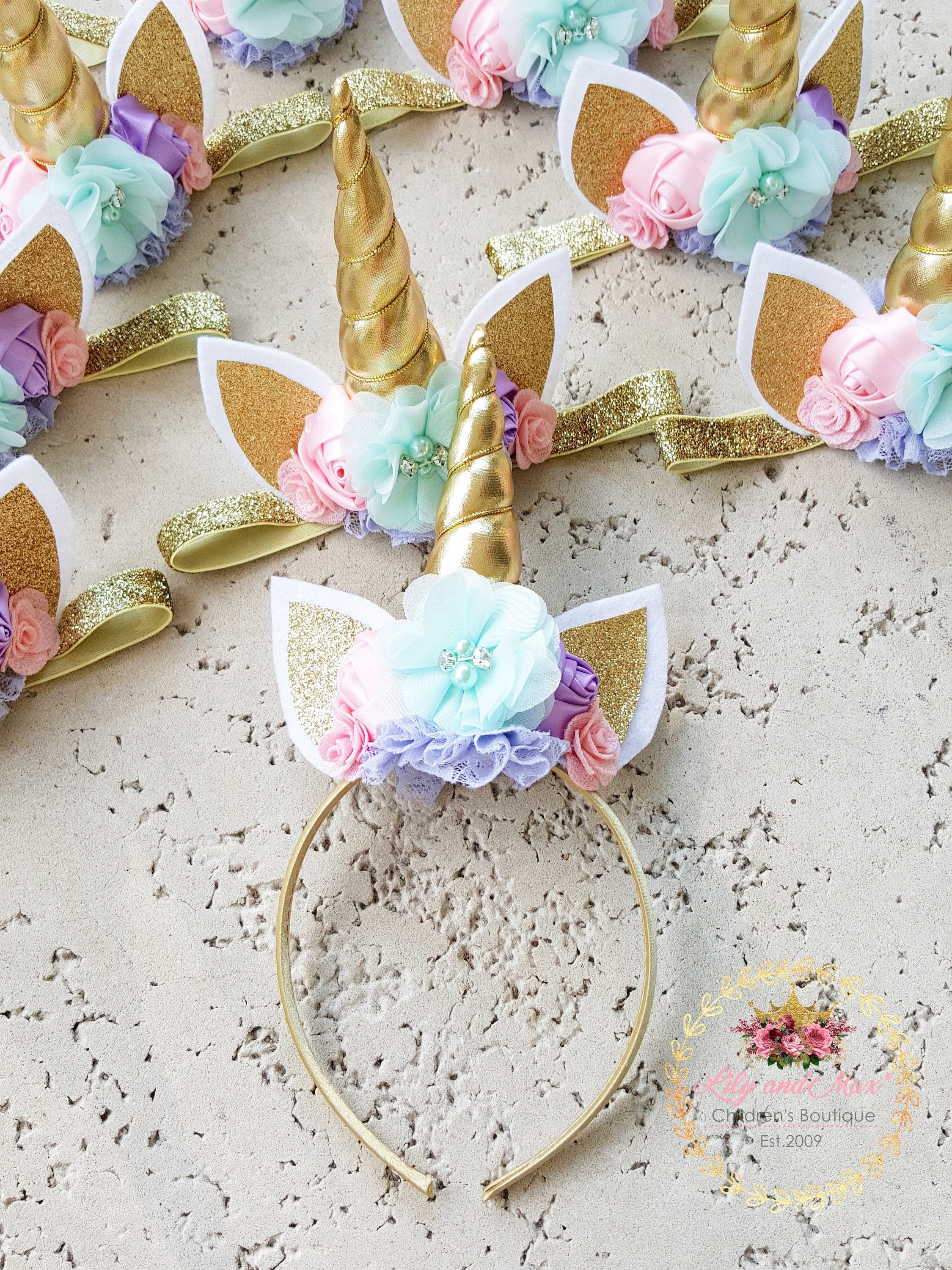 Gold Glitter Unicorn Headband: Pastel Flower Party Favor