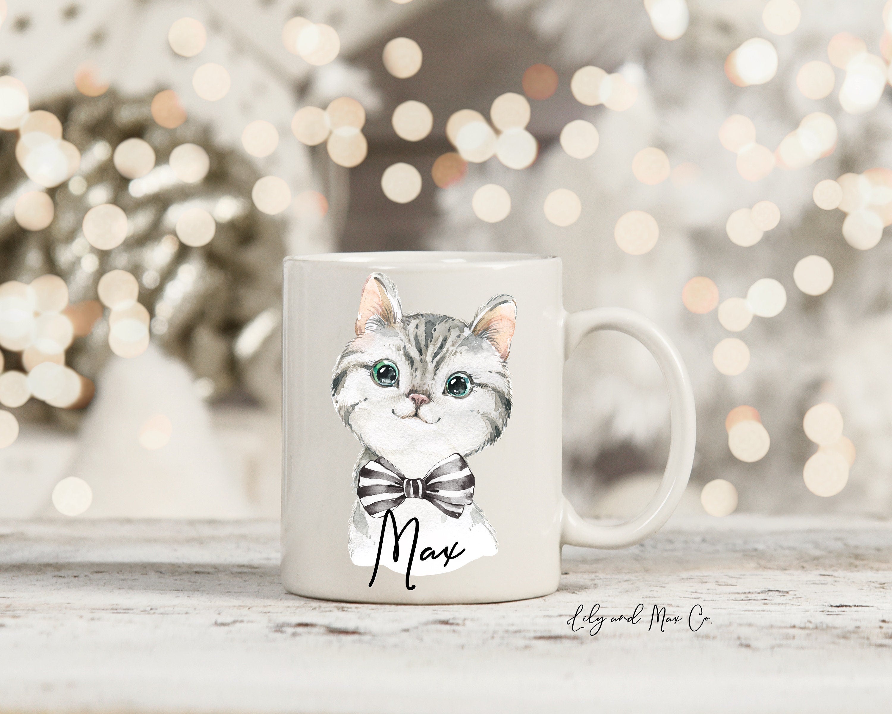 Personalized Boy Kitten Mug: Christmas Cat Ceramic Mug