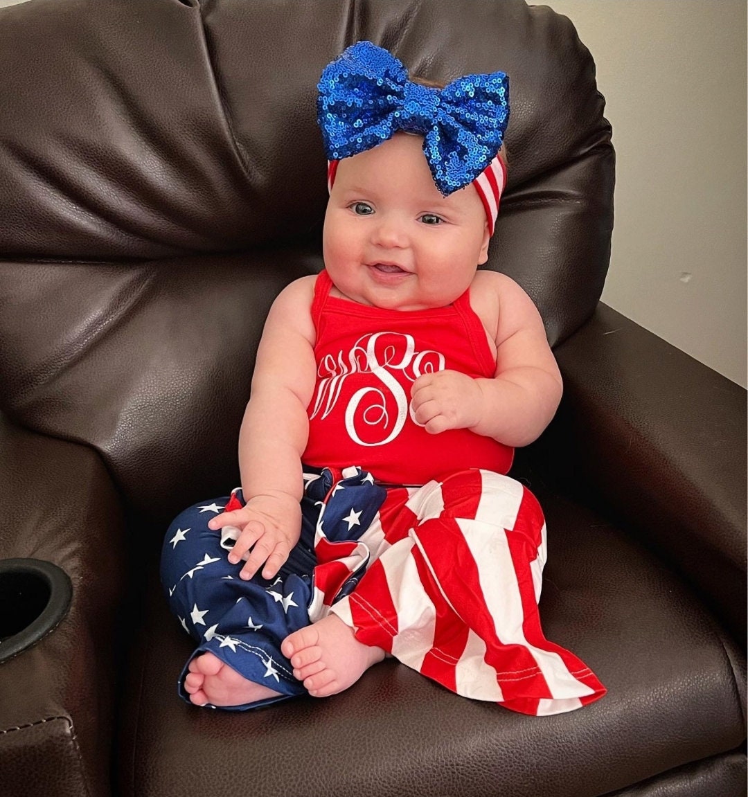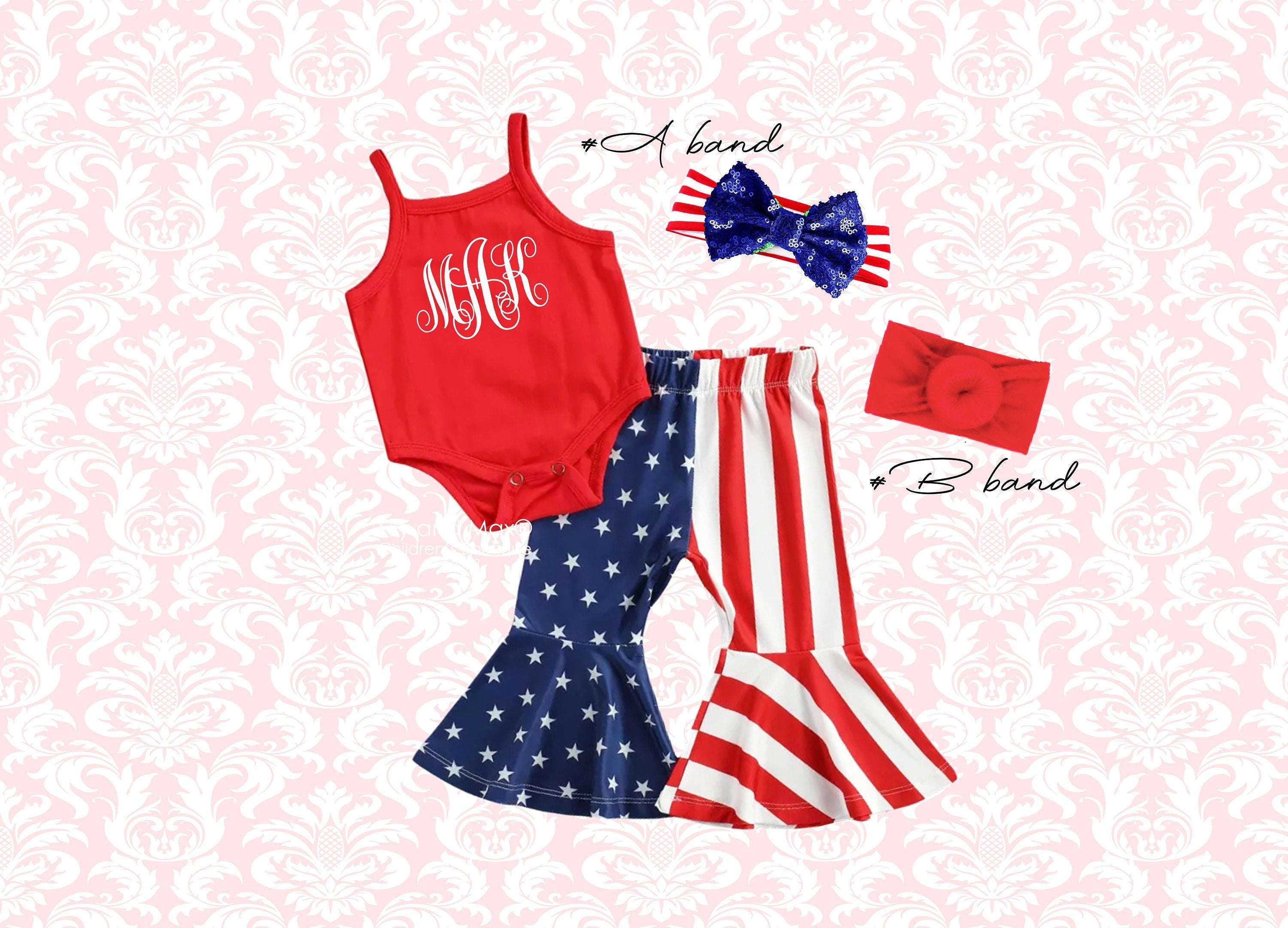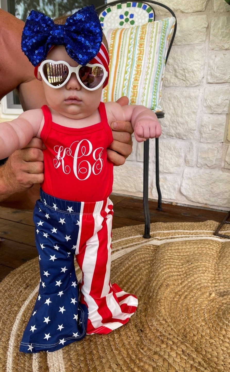 4th of July Outfit: Monogrammed Top & Flag Bell Pants Set