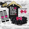 * Any custom products; Custom design shirts and body suits, custom tutus, etc., custom size headbands, custom size tutus, etc..